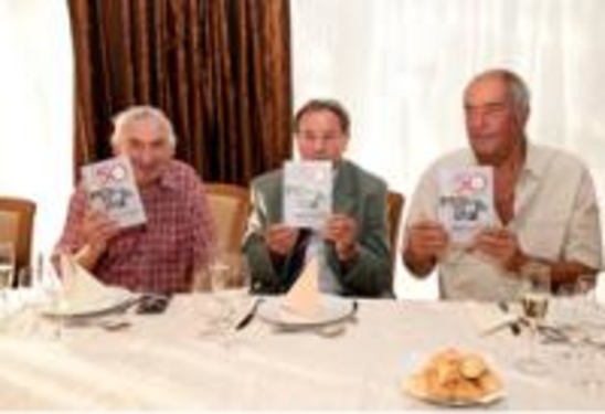 A képen látható személyek a jubileumi füzettel kezükben: